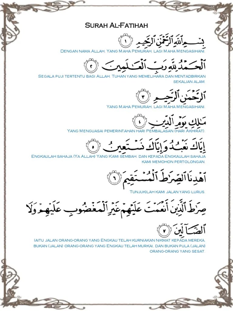Dengan nama allah, yang maha pemurah, lagi maha mengasihani, · pujian bagi allah, tuhan yang memelihara dan mentadbirkan sekalian alam, · yang . Dengan nama allah, yang maha pemurah, lagi maha . Shiratalladzina an'amta alaihim ghairil maghduubi alaihim waladhaalin.